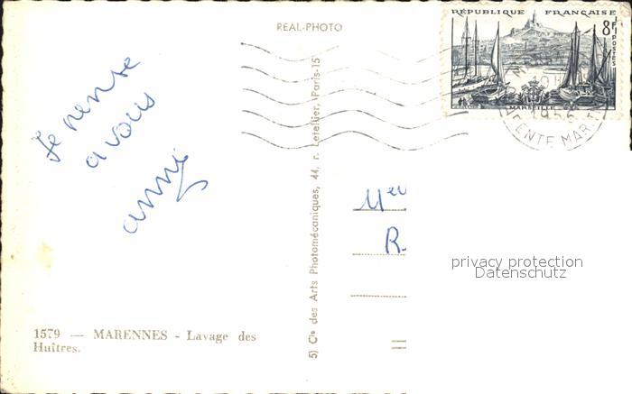 12447195 carte postale Marennes Charente-Maritime Lavage des Huitres postalisch gelaufen Erhaltung siehe scans KatCode: 11170017217219