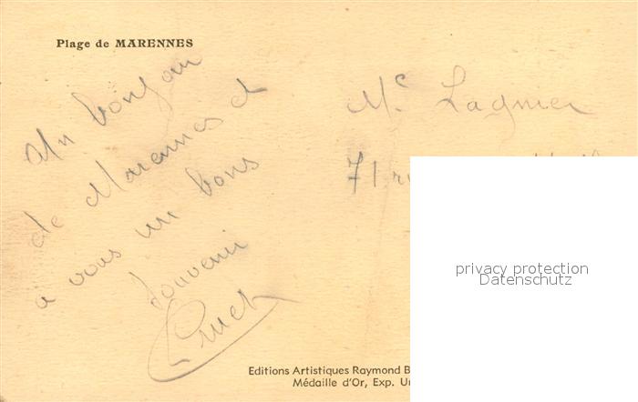 13587669 Marennes Charente-Maritime Plage postalisch gelaufen Erhaltung siehe scans [LiesaD40] carte postale Lies Katcode 11170017217219
