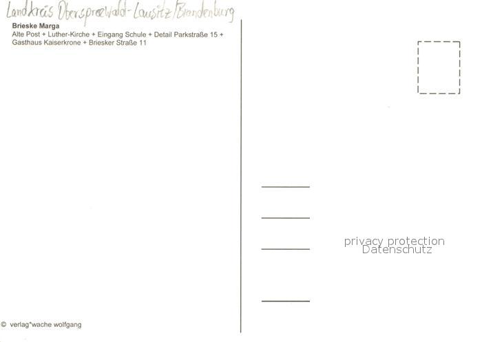 73179098 Marga Brieske Alte Post Lutherkirche Schule Parkstrasse Gasthaus Briesker Strasse 11 postalisch nicht gelaufen Erhaltung siehe scans [FriedD77] KatCode: 11110012066304