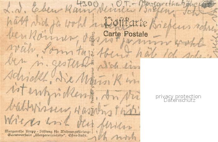 73692827 Margarethenhoehe Essen Margarethe Krupp-Stiftung fuer Wohnungsfuersorge postalisch nicht gelaufen Erhaltung siehe scans [FriedD77] KatCode: 11110005113000