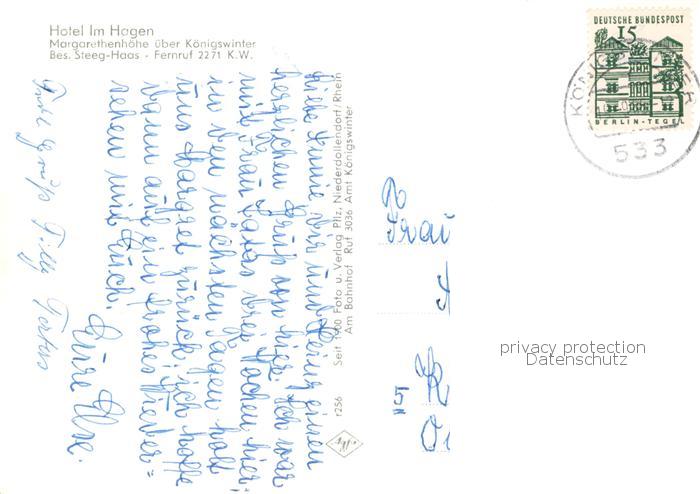 73852558 alte Postkarte Margarethenhoehe Koenigswinter Hotel Im Hagen oelberg postalisch gelaufen Erhaltung siehe scans [WerneD78] KatCode: 11110005382024