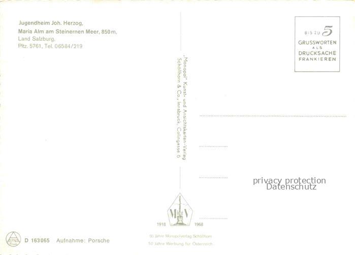 74091378 Maria Alm 850m am Steinernen Meer Pinzgau-Pongau AT Jugendheim Herzog postalisch nicht gelaufen Erhaltung siehe scans [WerneD78] KatCode: 11390322050612