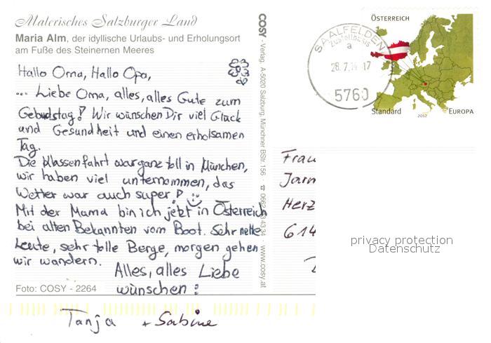 73070213 alte Postkarte Maria Alm Steinernen Meer postalisch gelaufen Erhaltung siehe scans [NatalD47] KatCode: 11390322050612
