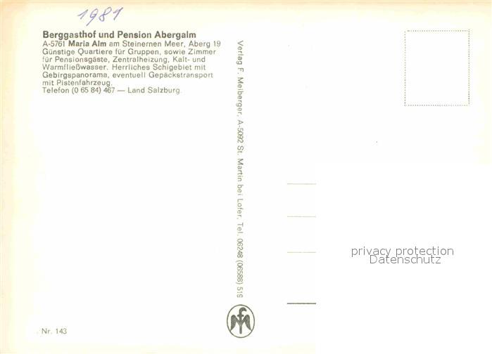 72781817 Maria Alm Steinernen Meer Berggasthof und Pension Abergalm Winterpanorama postalisch nicht gelaufen Erhaltung siehe scans [FriedD77] KatCode: 11390322050612