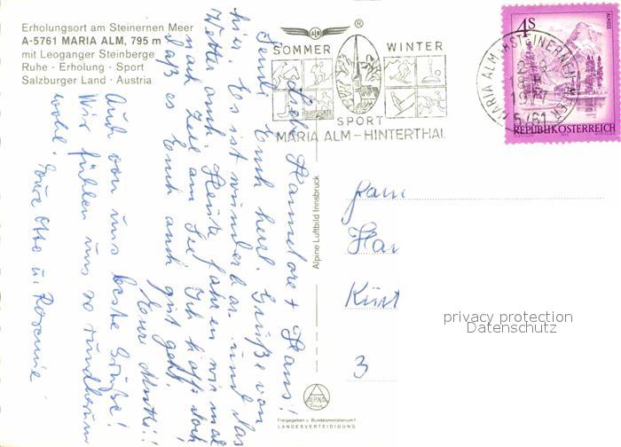 72850558 alte Postkarte Maria Alm Steinernen Meer Fliegeraufnahme postalisch gelaufen Erhaltung siehe scans [AndreD76] KatCode: 11390322050612