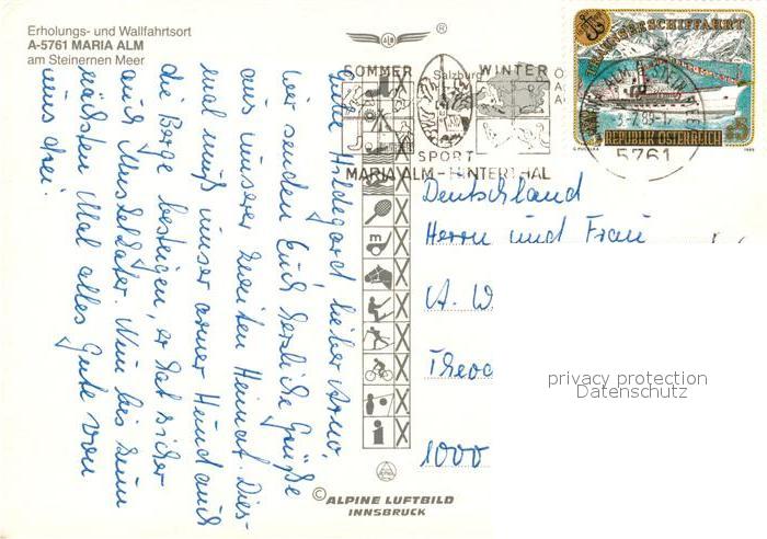 73314605 alte Postkarte Maria Alm Steinernen Meer Fliegeraufnahme mit Steinernes Meer postalisch gelaufen Erhaltung siehe scans [LiesaD40] KatCode: 11390322050612
