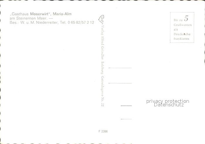 12394040 Maria Alm Steinernen Meer Gasthaus Moserwirt postalisch nicht gelaufen Erhaltung siehe scans KatCode: 11390322050612