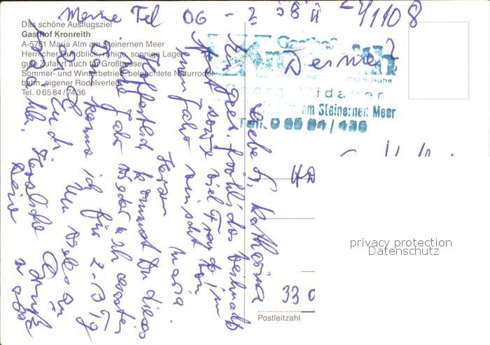 72257244 Maria Alm Steinernen Meer Gasthof Kronreith postalisch nicht gelaufen Erhaltung siehe scans KatCode: 11390322050612