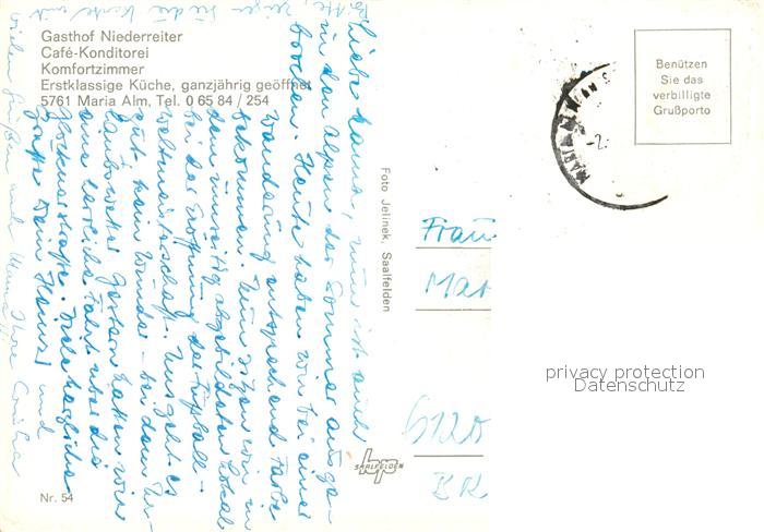 13233199 alte Postkarte Maria Alm Steinernen Meer Gasthof Niederreiter postalisch gelaufen Erhaltung siehe scans [NatalD47] KatCode: 11390322050612