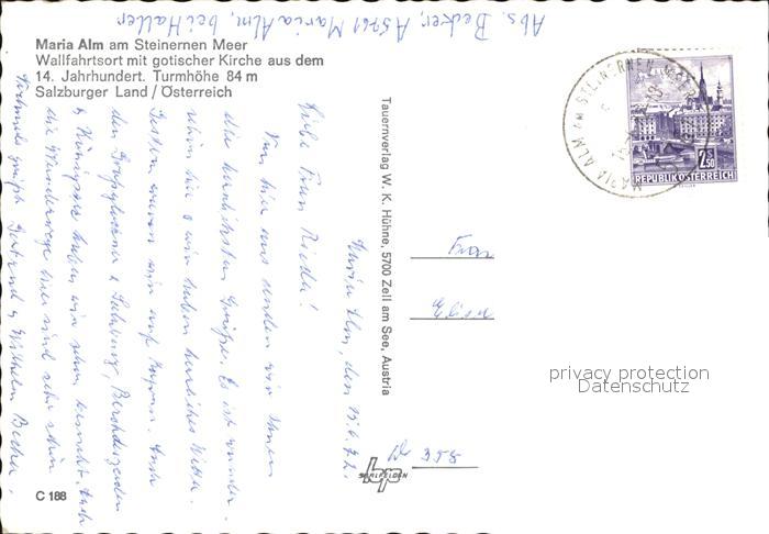 72433445 alte Postkarte Maria Alm Steinernen Meer Gotische Kirche postalisch gelaufen Erhaltung siehe scans KatCode: 11390322050612