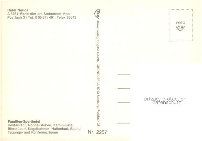 73713641 Maria Alm Steinernen Meer Hotel Norica postalisch nicht gelaufen Erhaltung siehe scans [WerneD78] KatCode: 11390322050612