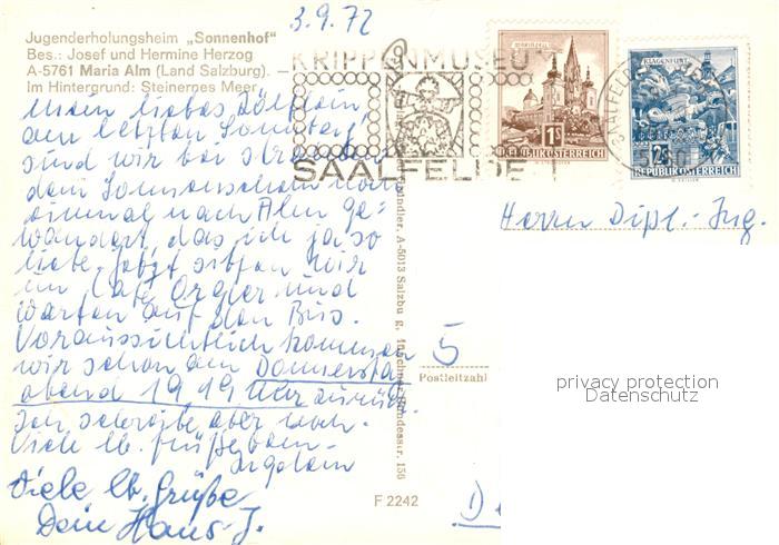 73267204 alte Postkarte Maria Alm Steinernen Meer Jugenderholungsheim Sonnenhof postalisch gelaufen Erhaltung siehe scans [KathaD81] KatCode: 11390322050612