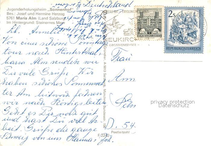 73243025 alte Postkarte Maria Alm Steinernen Meer Jugenderholungsheim Sonnenhof postalisch gelaufen Erhaltung siehe scans [KathaD81] KatCode: 11390322050612