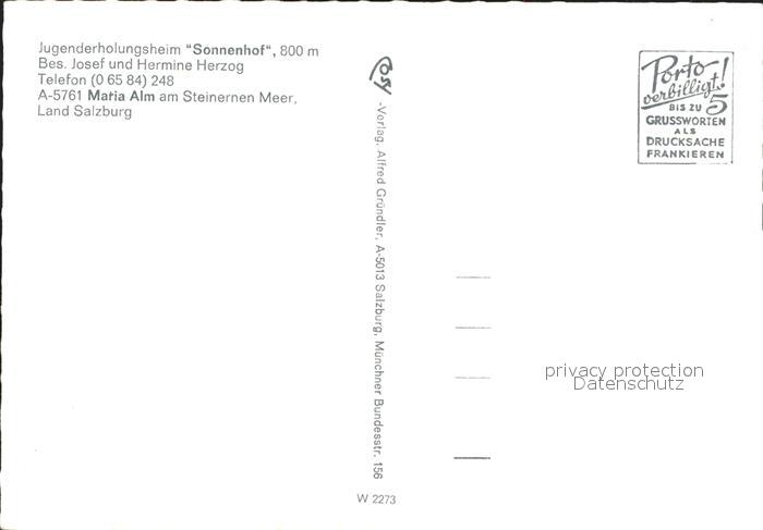 72012242 Maria Alm Steinernen Meer Jugenderholungsheim Sonnenhof postalisch nicht gelaufen Erhaltung siehe scans KatCode: 11390322050612