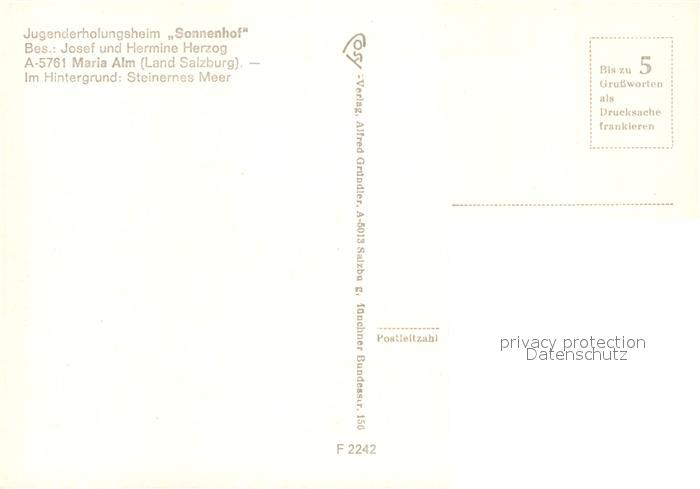 73286565 Maria Alm Steinernen Meer Jugenderholungsheim Sonnenhof postalisch nicht gelaufen Erhaltung siehe scans [NatalD47] KatCode: 11390322050612