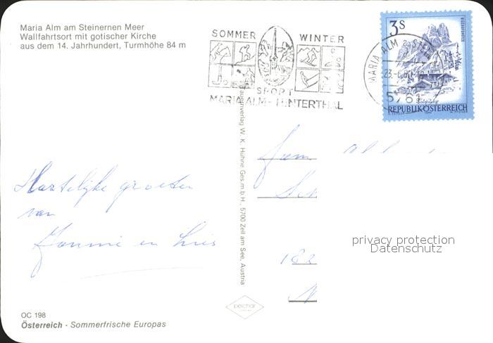 72092205 alte Postkarte Maria Alm Steinernen Meer mit gotischer Kirche Panorama postalisch gelaufen Erhaltung siehe scans KatCode: 11390322050612