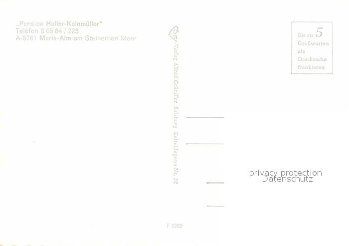 12871388 Maria Alm Steinernen Meer Pension Haller-Kainmueller postalisch nicht gelaufen Erhaltung siehe scans [PaolaD17] KatCode: 11390322050612