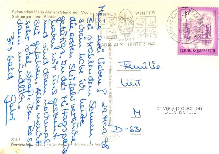 73340188 alte Postkarte Maria Alm Steinernen Meer Skiparadies postalisch gelaufen Erhaltung siehe scans [LiesaD40] KatCode: 11390322050612