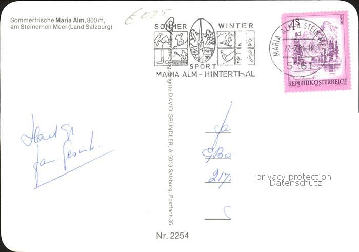 72093920 alte Postkarte Maria Alm Steinernen Meer Teilansicht mit Wallfahrtskirche postalisch gelaufen Erhaltung siehe scans KatCode: 11390322050612