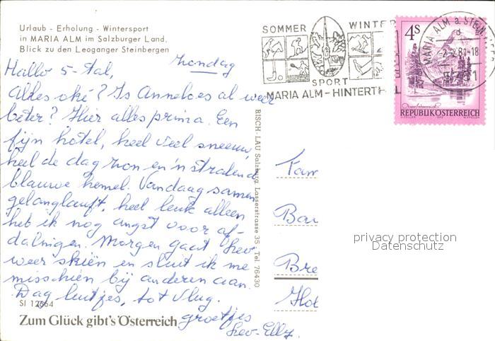 72417358 alte Postkarte Maria Alm Steinernen Meer Winterpanorama mit Blick zu den Leoganger Steinbergen postalisch gelaufen Erhaltung siehe scans KatCode: 11390322050612