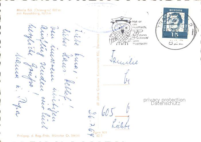 72285621 alte Postkarte Maria Eck Panorama mit Rauschberg Chiemgauer Alpen postalisch gelaufen Erhaltung siehe scans KatCode: 11110009189145