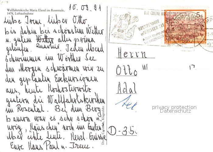 73049311 alte Postkarte Maria Ellend Oesterreich Fliegeraufnahme Wallfahrtskirche postalisch gelaufen Erhaltung siehe scans [KathaD81] KatCode: 11390