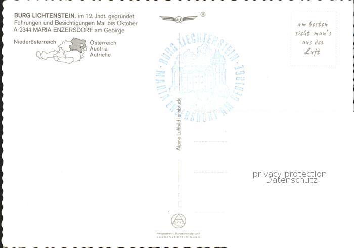 72012246 Maria Enzersdorf Fliegeraufnahme Burg Lichtenstein postalisch nicht gelaufen Erhaltung siehe scans KatCode: 11390127031716