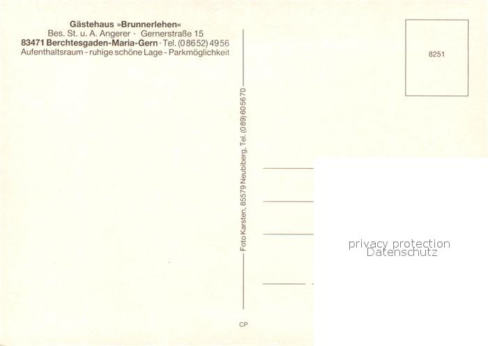 73081074 Maria Gern Gaestehaus Brunnerlehen Berchtesgadener Alpen postalisch nicht gelaufen Erhaltung siehe scans [FriedD77] KatCode: 11110009172116