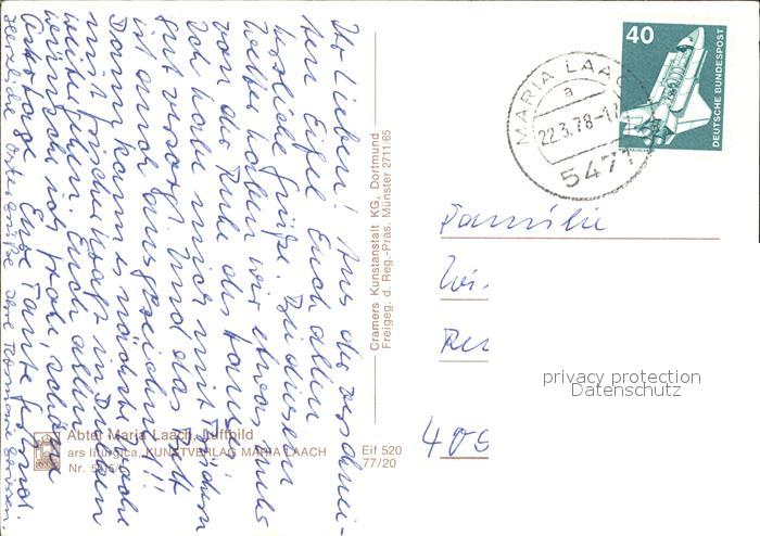 72496372 alte Postkarte Maria Laach Glees Abtei Maria Laach Fliegeraufnahme postalisch gelaufen Erhaltung siehe scans KatCode: 11110007131205