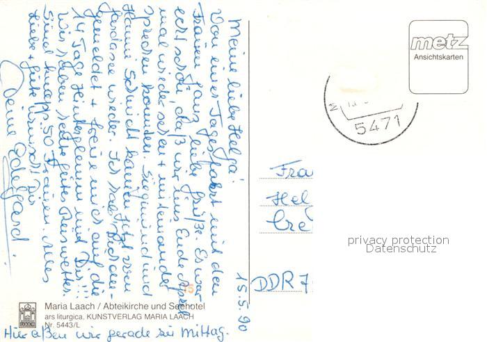 73011118 alte Postkarte Maria Laach Glees Abteikirche und Seehotel postalisch gelaufen Erhaltung siehe scans [WerneD78] KatCode: 11110007131205