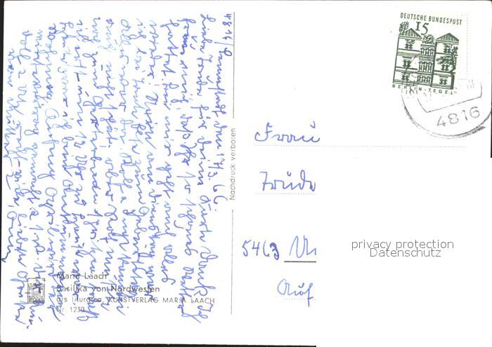 72321308 alte Postkarte Maria Laach Glees Basilika postalisch gelaufen Erhaltung siehe scans KatCode: 11110007131205