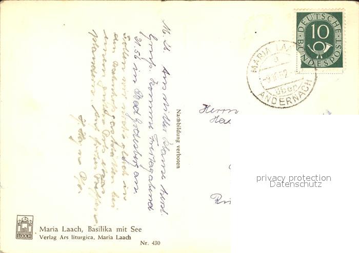 72433566 alte Postkarte Maria Laach Glees Basilika mit See postalisch gelaufen Erhaltung siehe scans KatCode: 11110007131205