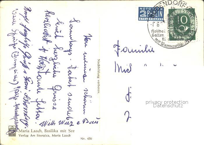 72304459 alte Postkarte Maria Laach Glees Basilika See postalisch gelaufen Erhaltung siehe scans KatCode: 11110007131205