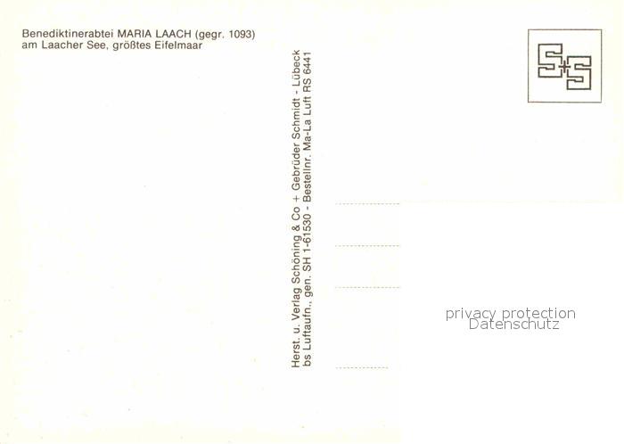 72714686 Maria Laach Glees Benediktinerabtei am Laacher See Fliegeraufnahme postalisch nicht gelaufen Erhaltung siehe scans [FriedD77] KatCode: 11110007131205