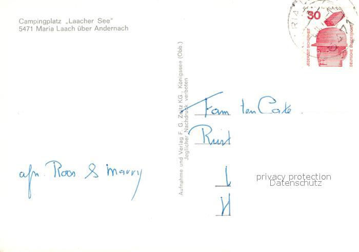 72935639 alte Postkarte Maria Laach Glees Campingplatz Laacher See postalisch gelaufen Erhaltung siehe scans [FriedD77] KatCode: 11110007131205