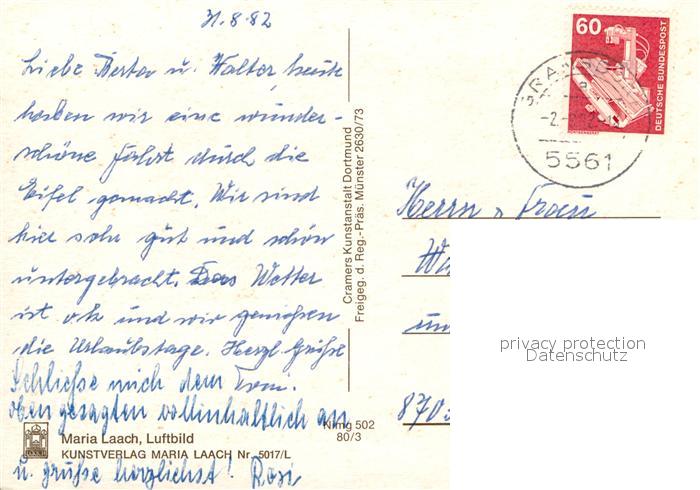 73011123 alte Postkarte Maria Laach Glees Fliegeraufnahme postalisch gelaufen Erhaltung siehe scans [WerneD78] KatCode: 11110007131205