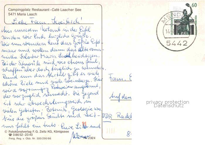 72772216 alte Postkarte Maria Laach Glees Fliegeraufnahme postalisch gelaufen Erhaltung siehe scans [AndreD76] KatCode: 11110007131205