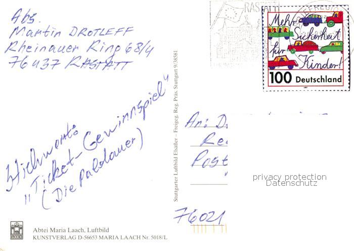 72929636 alte Postkarte Maria Laach Glees Fliegeraufnahme Abtei postalisch gelaufen Erhaltung siehe scans [KathaD81] KatCode: 11110007131205