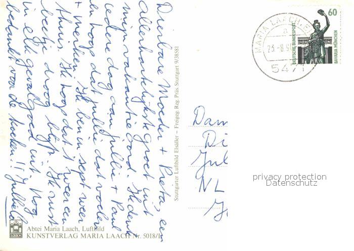 72856878 alte Postkarte Maria Laach Glees Fliegeraufnahme Abtei postalisch gelaufen Erhaltung siehe scans [AndreD76] KatCode: 11110007131205