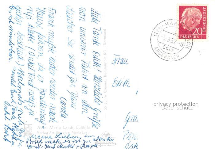 73163384 alte Postkarte Maria Laach Glees Fliegeraufnahme Abtei mit See postalisch gelaufen Erhaltung siehe scans [LiesaD40] KatCode: 11110007131205