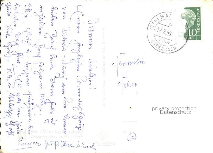 72180223 alte Postkarte Maria Laach Glees Fliegeraufnahme mit Abtei postalisch gelaufen Erhaltung siehe scans KatCode: 11110007131205