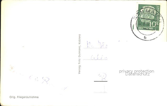 72428920 alte Postkarte Maria Laach Glees Fliegeraufnahme mit Lacher See postalisch gelaufen Erhaltung siehe scans KatCode: 11110007131205