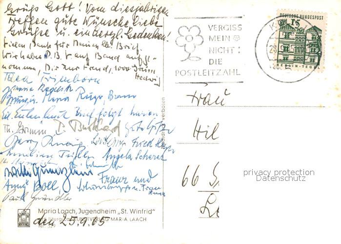 73095029 alte Postkarte Maria Laach Glees Jugendheim Sankt Winfrid postalisch gelaufen Erhaltung siehe scans [KathaD81] KatCode: 11110007131205