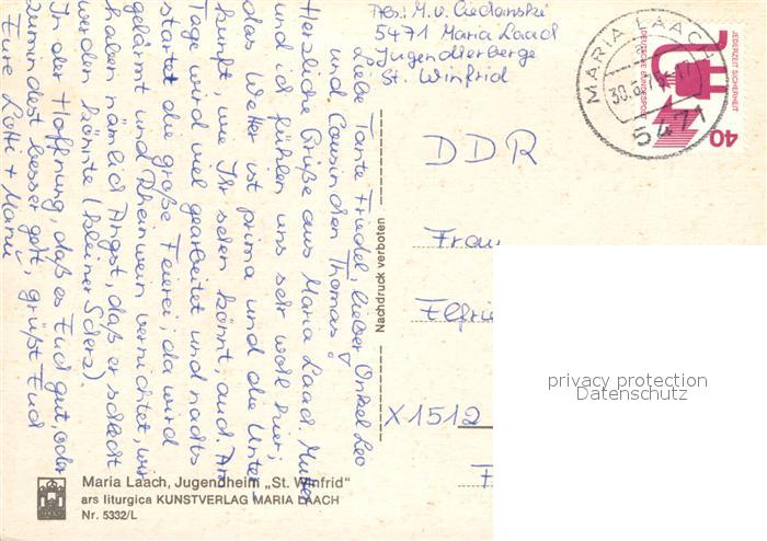 72974084 alte Postkarte Maria Laach Glees Jugendheim St. Winfrid postalisch gelaufen Erhaltung siehe scans [PaolaD17] KatCode: 11110007131205