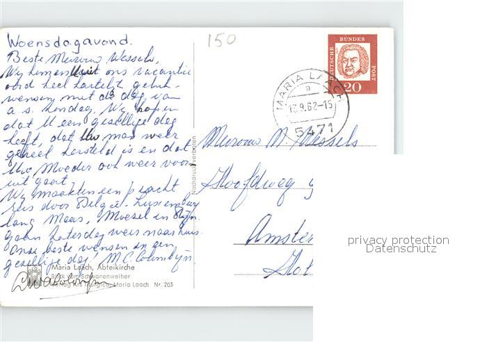 72037016 alte Postkarte Maria Laach Glees Maria Laach Abteikirche postalisch gelaufen Erhaltung siehe scans KatCode: 11110007131205