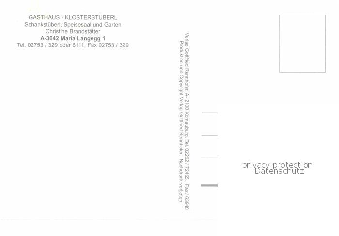 72762135 Maria Langegg Klosterstueberl Terrasse Gastraum Klosterkirche Gewoelbekeller postalisch nicht gelaufen Erhaltung siehe scans [WerneD78] KatCode: 11390124031327