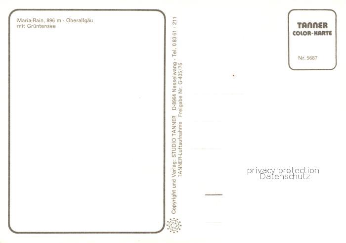 73085243 Maria Rain Allgaeu Fliegeraufnahme mit Gruentensee postalisch nicht gelaufen Erhaltung siehe scans [FriedD77] KatCode: 11110009780128