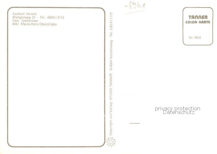 73868213 Maria Rain Allgaeu Gasthof Hirsch Restaurant postalisch nicht gelaufen Erhaltung siehe scans [FriedD77] KatCode: 11110009780128