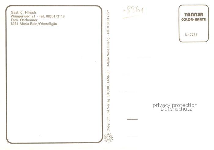 73868216 Maria Rain Allgaeu Gasthof Hirsch postalisch nicht gelaufen Erhaltung siehe scans [FriedD77] KatCode: 11110009780128