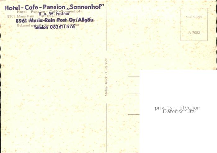 72483530 Maria Rain Allgaeu Hotel Cafe Sonnehof Gaststube postalisch nicht gelaufen Erhaltung siehe scans KatCode: 11110009780128